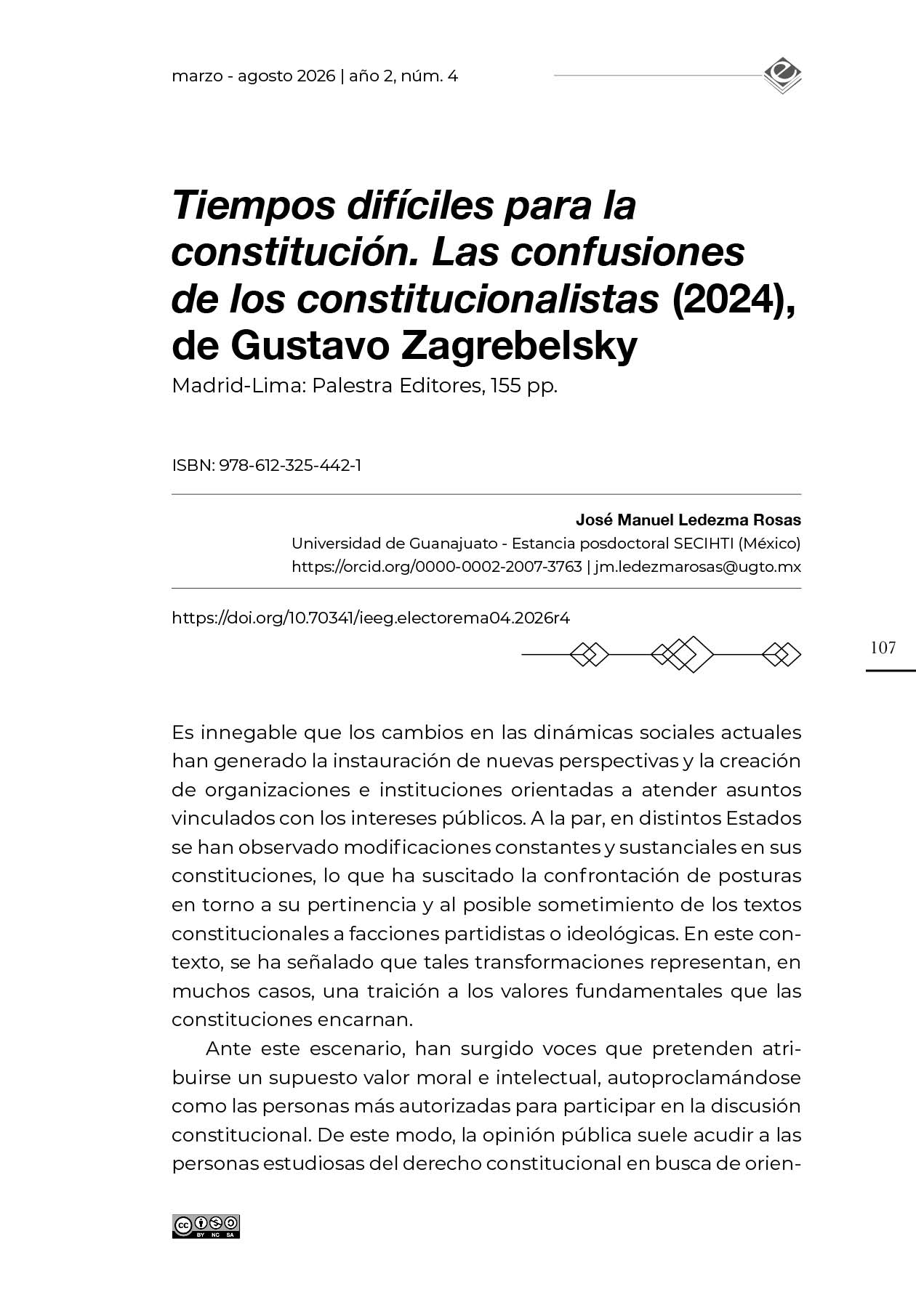 Reseña de la obra: Zagrebelsky, G. (2024). "Tiempos díficiles para la constitución. Las confusiones de los constitucionalistas, Madrid-Lima: Palestra.
